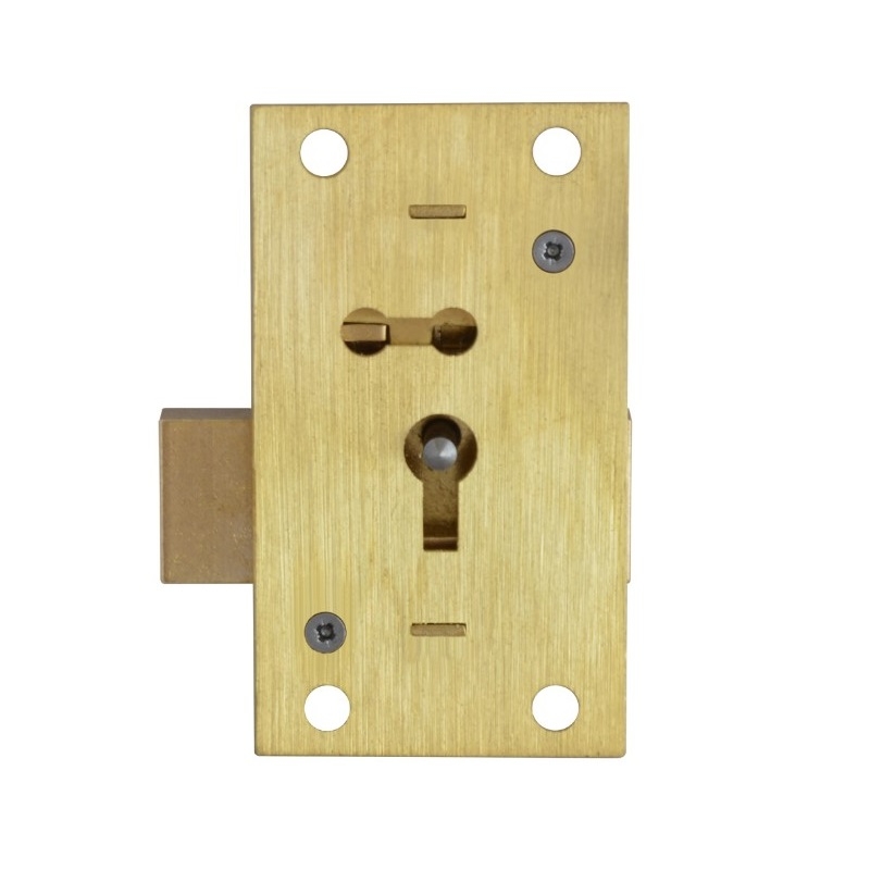 64 x 35mm solid brass Asec 4 lever cupboard lock supplied with single key. Deadbolt is locked and unlocked by key.
