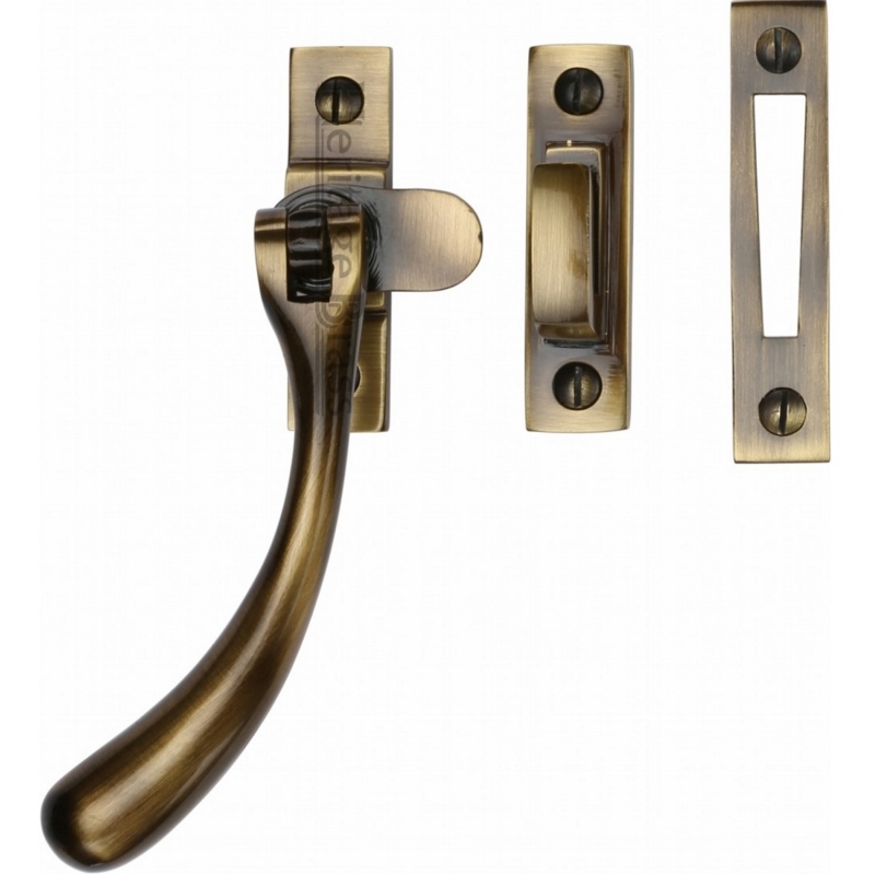 Solid brass ball end casement window fastener in antique finish. From the Heritage Brass range by M Marcus