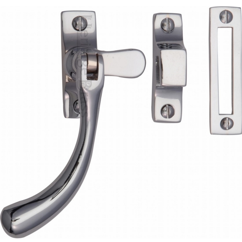 Solid brass ball end casement window fastener finished in polished chrome. From the Heritage Brass range by M Marcus