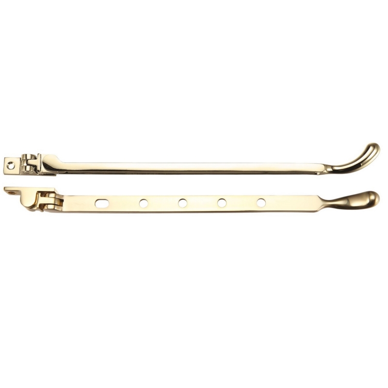 Fulton & Bray 12" solid brass bulb end casement stay from Zoo Hardware. Finished in polished brass and supplied with fixings.
