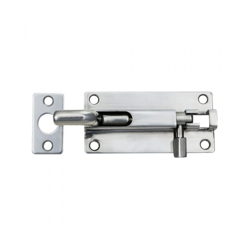 Cranked bolt that will lock into place enabling it to be used in the vertical position at the top of a door or window. The bolt is slid into the staple and the finger knob is rotated to engage in the housing slot thus locking it in position.