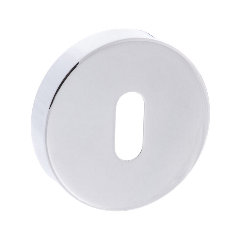 Forme mortice key escutcheons on minimal rose in polished chrome finish,from Atlantic Hardware