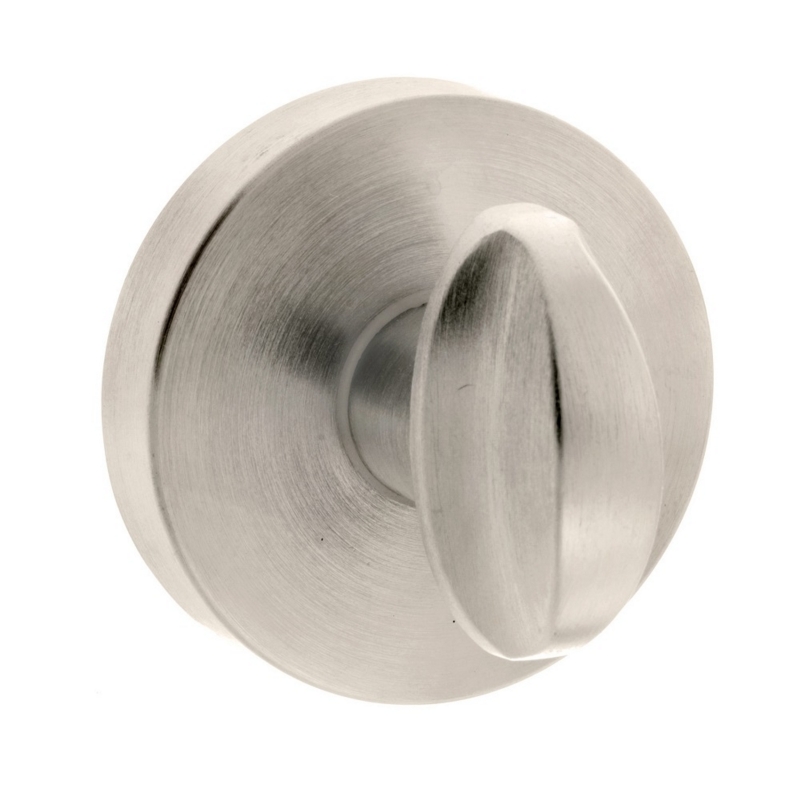 WC turn & release on minimal round rose in satin nickel. Part of the Forme range from Atlantic Hardware.