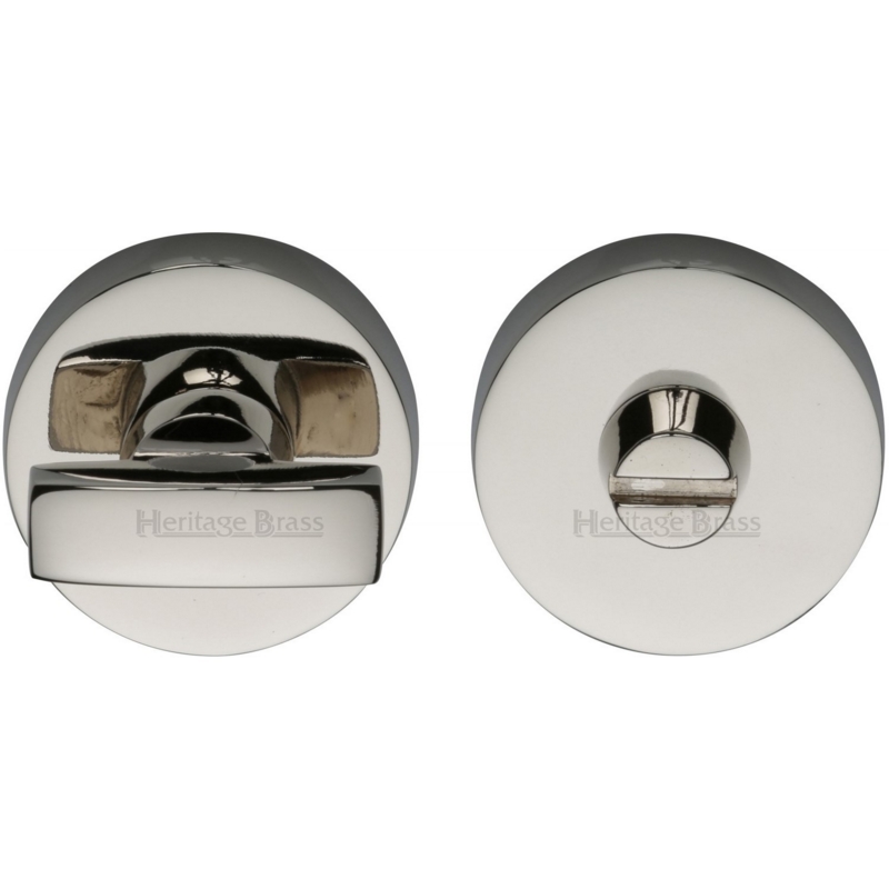 Solid brass turn and release From the Heritage Brass range by M. Marcus. finished in Polished Nickel, supplied with 5mm spindle and fixings